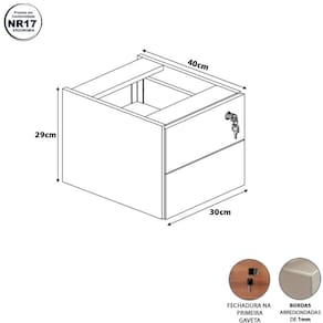 Compacto e funcional, o Gaveteiro Suspenso Corporate é ideal para manter documentos e materiais de escritório sempre organizados. Com duas gavetas espaçosas e sistema de chave, oferece segurança e praticidade no dia a dia. Pode ser acoplado à mesa ou escrivaninha, combinando com outros móveis da linha Corporate para um ambiente moderno e eficiente.