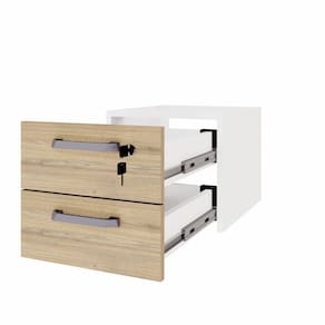 Gaveteiro Suspenso F5 Office com 2 gavetas e chave, ideal para organizar documentos e objetos com praticidade e segurança. Compacto e funcional, combina com mesas da linha F5, trazendo elegância e eficiência ao ambiente corporativo.