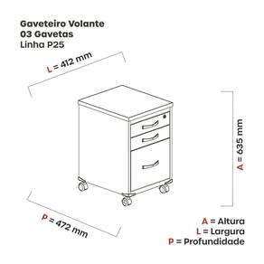 Gaveteiro volante com tampo de 25mm de espessura com acabamentos em fita ABS 1mm. Com 3 gavetas com frente em MDP 15mm , com sistema de deslizamento por trilho corrediça com roldana de nylon com capacidade de 20kg por gaveta. Consegue combinar facilmente com outras mobílias sem atrapalhar a decoração, pois possui um design clássico. É ideal para desempenhar tarefas diárias de trabalho , ele oferece espaço para você e deixa o seu local de trabalho muito mais organizado e elegante. Acabamento da Gaveta: Pintura Ambiente Principal: Escritório Complexidade da Montagem: Média: pode ser montado por mais de uma pessoa e/ou necessite de maior conhecimento para montagem Cor: Nogueira Casablanca/Preto Cor do Produto: Nogueira Casablanca/Preto Cor Interna: Nogueira Casablanca/Preto Escala de Brilho: Semi-Fosco Escala de Brilho da Gaveta: Semi-Fosco Gaveta com Chave: 01 Itens Inclusos: 1 Gaveteiro, Kit Ferragens e Manual de Montagem Manual de Montagem e Instalação: https://product-hub-prd.madeiramadeira.com.br/652439/documents/9124543e-0e1f-41c0-b182-41ba85fc54e2251021gaveteirovolante03gv.pdf Material da Gaveta: Aço Material do Puxador da Gaveta: Poliestireno/Cromado Material Principal: MDP Necessita Montagem: Sim Origem do Produto: Nacional Peso: 12.74 Peso Máximo por Gaveta: 15 Possui Portas: Não Possui Prateleiras: Não Recomendações de Uso, Manutenção e Limpeza: Limpeza deve ser feita com um pano levemente umidecido e um pano seco. Rodízio com Trava: Sim Sapatas Niveladoras: Sim Sistema de Montagem: Parafuso Suporta Até (kg): 15 Tipo de Corrediça da Gaveta: Metálica Telescópica Tipo de Puxador da Gaveta: Externo