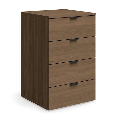 Acabamento da Fita Borda PVC Gavetas Externas Corrediças Telescópicas Matéria-prima MDP BP Peso suportado por gaveta 6 kg Quantidade de gavetas 4 Puxadores Metálicos Sistema de montagem Parafuso Philips e Minifix