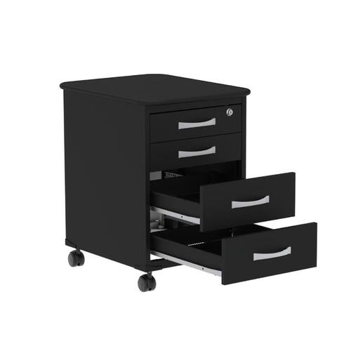 Neste gaveteiro com quatro gavetas e rodinhas, você encontra praticidade, funcionalidade e a peça que faltava para você organizar seu escritório. Com qualidade e resistência garantida graças a um reforço em aço nas gavetas, guardar e armazenar papéis, documentos, acessórios e materiais de trabalho fica fácil, fácil. Com fechamento à chave, duas gavetas menores e duas gavetas maiores para diferentes tipos de organização, esse gaveteiro é tudo o que você precisa pelo preço que você procura!
