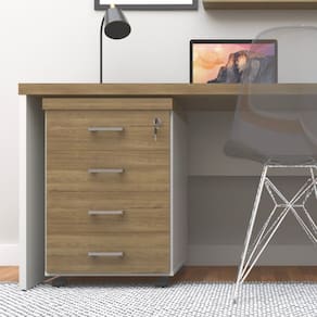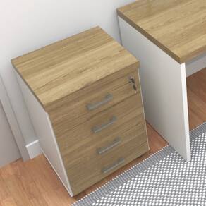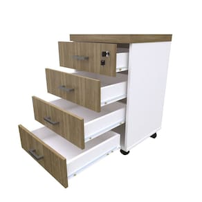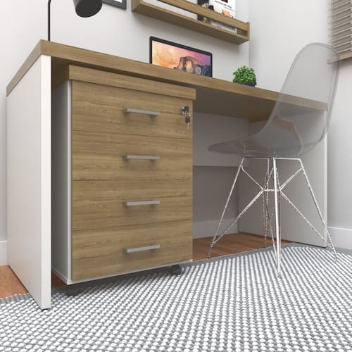 Gaveteiro Volante com 4 Gavetas para Escritório ou Home Office Branco/Carvalho Mel - Bege