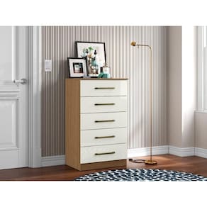 Cômoda 05 gavs. Produzido em MDP 12mm e 15mm de espessura, proporcionando resistência e durabilidade. Amplo espaço interno, garantindo maior firmeza ao móvel. Puxadores de Plástico dando maior resistência. Acabamento em verniz alto brilho, garantindo a conservação do móvel, além de manter o brilho constante oferece ao móvel beleza, resistência e durabilidade prolongando a vida útil do produto.