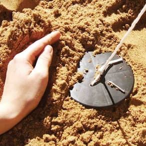 Acompanha discos para melhor fixação na areia e sacola para facilitar sua armazenagem e transporte.