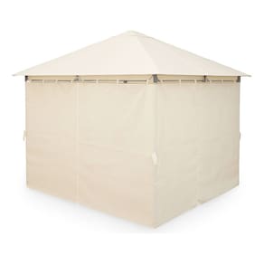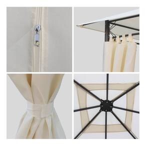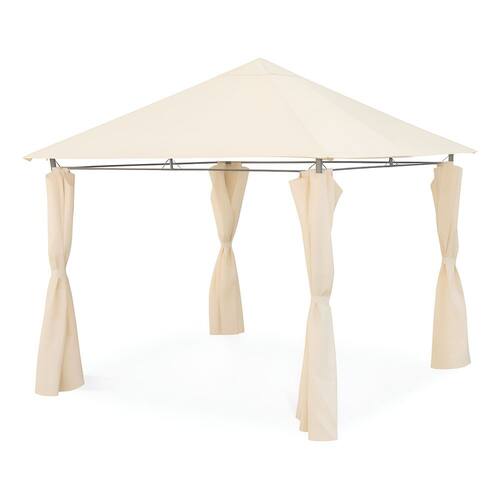 A cobertura em poliester de alta qualidade protege contra o sol e o vento, enquanto as cortinas laterais inclusas proporcionam charme extra a decoracao e mais privacidade para seus momentos de lazer.
