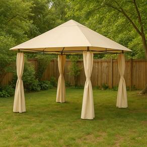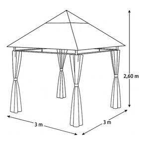 Transforme seu jardim ou quintal em um ambiente elegante e aconchegante com este Gazebo Miami 3x3m. Ideal para momentos de lazer, refeicoes ao ar livre ou eventos especiais, ele oferece protecao, estilo e praticidade em um so produto. Diferenciais do Produto: Estrutura em aco resistente, garantindo estabilidade e durabilidade. Cobertura e cortinas laterais em poliester de alta qualidade, que protegem contra sol e vento. Cortinas inclusas para maior privacidade e charme na decoracao. Pode ser fixado ao chao com parafusos ou estacado no solo, oferecendo versatilidade na instalacao. Design sofisticado, perfeito para jardins, quintais, areas gourmet, piscina ou varandas amplas. Dimensoes do Gazebo: Largura: 3 m Comprimento: 3 m Altura total: 2,60 m Materiais: Estrutura: Aco Cobertura e cortinas laterais: Poliester Marca: Não Informado