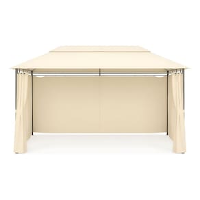 A cobertura em poliester de alta qualidade protege contra o sol e o vento, enquanto as cortinas laterais inclusas proporcionam charme extra a decoracao e mais privacidade para seus momentos de lazer.