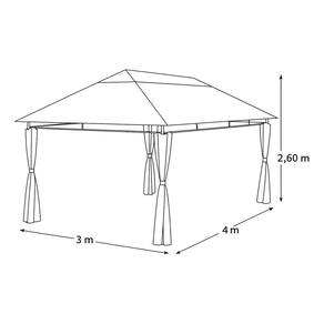- Dimensoes do gazebo montado: 4,00 m (largura) x 3,00 m (comprimento) x 2,60 m (altura)
