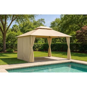 Gazebo Em Aço Com Cortinas Em Poliéster 4x3m - Tenda Malibu Bege
