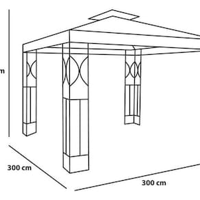 Produto: Gazebo Altura: 3,00 metros Largura: 3,00 metros Comprimento: 3,00 metros Tipo de Gazebo/Tenda: Fixo Articulável: Não Material da Estrutura: Metal Tipo do Material da Estrutura: Aço Material da Cobertura: Tecido Tipo de Material da Cobertura: Poliéster Cor: Bege Área de Cobertura: 9,00 m² Formato: Quadrado Possui Abertura para Ventilação: Sim Tela Anti Inseto: Não Possui Cortina: Não Modelo: Decorativo Manutenção: Mantenha a beleza do seu gazebo com facilidade. Limpe-o com água e sabão neutro, e utilize produtos específicos de acordo com o tipo de material para evitar danos causados por produtos químicos. Cuidados: O produto não deve ficar exposto as chuvas fortes e em áreas sujeito a ventania forte.