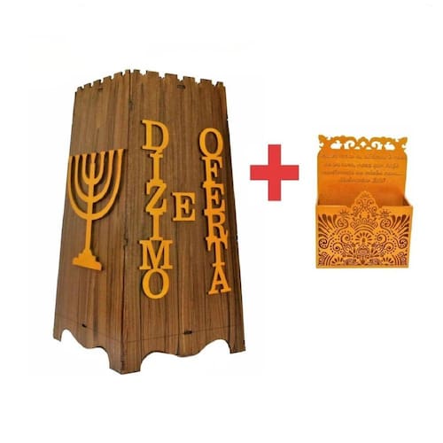 01 - gazofilácio para dízimos e ofertas para igreja com menorá/ candelabro em duas laterais.