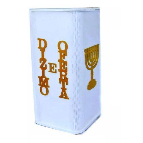 01 - gazofilácio para dízimos e ofertas para igreja, com menorá nas duas laterais.