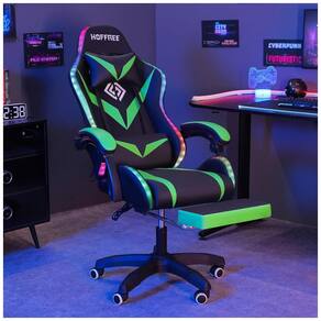 Colorful RGB LED LightsDesigned with LED flashing lights on the back and the edge of the seat, you can easily adjust multiple lighting modes and brightness by remote control, creating a more dynamic feel in your gaming room while playing 2 Points Lumbar MassageThe massage gaming chair features two motors in the waist cushion position for lumbar massage function, providing you ultimate comfort and relaxation Ergonomic Game Chair Strong metal frame designed to help promote a comfortable seated position, keeping you comfy after long hours of game or work. Helps you maintain a neutral, balanced posture and reduce your pressure and pain Adjustable Computer ChairWell padded seats, lumbar headrest cushions make extended gaming sessions more comfortable and enjoyable. The extra bonus footrest and adjustable linkage armrest allows you to enjoy a high quality nap anytime anywhere, and immediately restore energy Warranty ServiceWe provide 18 months warranty. If you have any problems during assembly and use, please contact us, the service team will reply within 24 hours