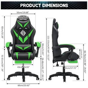 Ergonomic Massage Gaming Chair with Lights Colorful RGB Led lights strip surrounding Up to 358 flicker patterns 7 static monochrome Speed and brightness adjustment Package Includes Gaming Chair Accessories Assembly Tools You need to assemble it by yourself If you have any questions during installation, we will help you solve it ASAP, thank you Specification Back Rest Reclining Angle 90 135 Adjustable Height Range 10CM Applicable Height 155 , 5ft 6ft 3in Overall Dimension L x W x H 60x60x121 131cm , 23.6x23.6x47.6 51.6 Backrest Dimension 50x82cm , 19.7x32.3 Seat Dimension 45x43cm , 17.7x16.9 Comfortable Headrest 2 POINTS Lumbar Massage Thickened Sponge Cushion Padded Linkage Armrests Class 3 Gas Lift Weight Capacity 397lbs Smooth Rolling Casters LED light remote control Gaming Chair Massage with Speakers Bluetooth and RGB LED Lights Gaming Chair Massage with RGB LED Lights Gaming Chair with Massage Ergonomic Mesh Office Chair 2 Points Lumbar Massage Colorful RGB LED Lights Bluetooth Music Speaker Adjustable Headrest Adjustable Lumbar Support Material PVC LeatherSpongeSteel Nylon MeshSpongeSteel Nylon Max. Load Bearing 180KG, 397lbs 113KG, 250 lbs Color YellowWhite, BlueWhite, RedBlack, WhiteBlack, BlueBlack, YellowBlack, PurpleBlack, GreenBlack YellowWhite, BlueWhite, RedBlack, White, YellowBlack, PurpleBlack, GreenBlack White, Black
