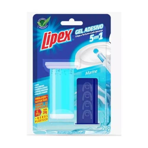 Gel Adesivo Detergente Sanitário Com Aplicador Marine 28g ajuda a manter o vaso sanitário limpo e perfumado, com praticidade e higiene na aplicação, sem o uso de cestinha ou pastilha aplicada com a mão. Basta aplicar na parede do vaso e a cada descarga ele age limpando e perfumando de forma eficaz e sem acumular bactérias