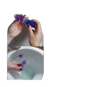 Após limpar o vaso sanitário é hora de aplicar o Gel Adesivo Lipex: Coloque o aplicador dentro do refil, empurre suavemente até a parte superior do refil encostar no botão da primeira dose.