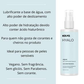 Gel Corporal Lubrificante A Base De Água E Ácido Hialurônico 120ml O Lubrifcante Corporal a base de água com Ácido Hialurônico Kalya Hyalo Aqua é o luxo e minimalismo que você precisa para sua saúde, bem-estar e também para o seu parceiro a . É um gel altamente deslizante que contém em sua composição ácido hialurônico que além de lubrficar a região íntima também promove um equilibrio e hidratação cutânea. Ideal para pessoas muito sensíveis que buscam um momento íntimo com mais segurança e para quem não gosta de corantes e cheiros no produto. Kalya Hyalo Aqua foi desenvolvido com as melhores matérias-primas disponíveis no mercado, além disso, é vegano, sem fragrância, sem glicóis, sem Parabenos, sem corante e feito a base de água.