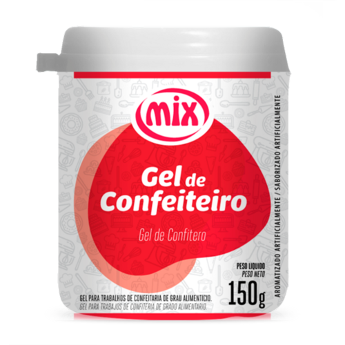 Gel De Confeiteiro Incolor 150g Mix - CARACTERÍSTICASGel utilizado para substituir a gelatina na decoração de bolos e tortas, atribuindo um efeito cristalino e brilhante. Também é ideal para preparar a superfície do bolo antes de aplicar a pasta americana, evitando que o mesmo esfarele. Ideal para aplicação em papel arroz, massas, decorações, pães, bolos e tortas.Armazenar em local seco e à temperatura ambiente. Evite exposição ao sol. INGREDIENTESÁgua, xarope de glucose, açúcar, sal, umectante: sorbitol, espessante: goma carragena, conservante: sorbato de potássio, acidulante: ácido cítrico e aromatizante. AL??RGICOS: pode conter leite, ovo e soja. N??O CONT??M GL??TEN.REGRAS GERAISImagens ilustrativas, as cores podem alterar conforme o seu monitorTodas as informações divulgadas são de responsabilidade do fabricante/fornecedor.Caracter?sticas Gerais do Produto:Garantia: Sem Garantia Marca: MIX Ingredientes