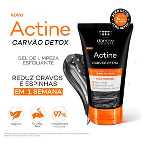Darrow Actine Carvão Detox Gel de Limpeza Esfoliante Dermatológico é um gel de limpeza esfoliante indicado para a limpeza das peles oleosas a acneicas, que oferece ação profunda na redução de cravos, desobstrui os poros e elimina impurezas e toxinas.