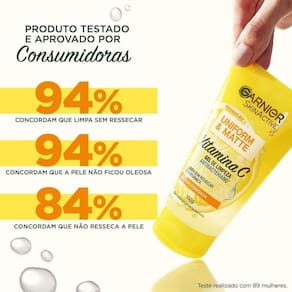 Gel de limpeza facial antibacteriano vitamina c 150g garnier - inovação - uniform & matte - vitamina c - gel de limpeza antibacteriano - limpa sem ressecar e uniformiza - antioleosidade - dermatologicamente testado