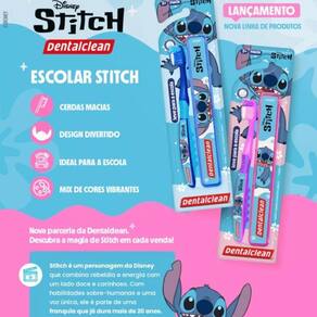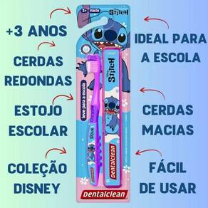 Gel dental 50g + escova de dente 3a - stitch - dentalclean Gel dental 50g + escova de dente escolar - stitch - dentalclean Escova de dente infantil stitch escolar - 3a+ O kit de escova escolar stitch é pura diversão Com escova de cabeça pequena, cerdas macias power tip e cabo premium ergonômico. Recomendada para crianças de 3 a 10 anos, ela é ideal para transformar a higiene oral em uma tarefa divertida para seus filhos e sem para você, afinal, escovar os dentes também pode ser divertido, disponível nas cores rosa e azul. No blister contém 1 escova e 1 estojo escolar. Após a compra envie mensagem solicitando a cor desejada, caso haja em , lhe atenderemos Gel dental infantil stitch sabor morango 50g colecionável - 3anos+ - dentalclean O gel dental infantil stitch oferece proteção contra as cáries. Sua fórmula com flúor ativo fortalece o esmalte dos dentes deixando-os fortes e saudáveis. Seu delicioso sabor agrada as crianças e ajuda o bom hábito da escovação. Colecionável, a cor da embalagem é surpresa Instruções de uso: Escove seus dentes adequadamente após cada refeição, três vezes ao dia ou segundo a recomendação do seu dentista. Enxágue completamente depois da escovação. Precauções: Indicado para crianças com 3 anos+. Crianças até 6 anos: use uma quantidade do tamanho de uma ervilha, com supervisão de um adulto durante a escovação para minimizar a deglutição. Deve ser aplicado por um adulto ou sob sua supervisão. Se estiver ingerindo flúor proveniente de outras fontes, consultar o pediatra ou dentista. Não ingerir. Manter em local seco, fresco e ao abrigo da luz solar. Composição: fluoreto de sódio 1100 ppm de flúor , água, glicerol, dióxido de silício, sorbitol, laurilsulfato de sódio, carmelose sódica, aroma, xilitol, benzoato de sódio, sucralose, vermelho amaranto ci 16185 , amarelo de tartrazina ci 19140 . Contém fluoreto de sódio. Aut. Func: 2.02974-5. Processo anvisa n: 25351.384434/2024-88 Fabricação, validade e lote: vide embalagem.