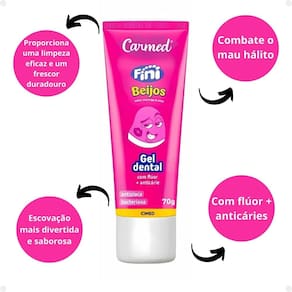 Transforme a rotina de cuidados com a boca em um momento prazeroso com o Gel Dental Carmed Fini Beijos. Com um sabor doce e irresistível de "Beijos", inspirado nas famosas guloseimas da Fini, este gel dental foi desenvolvido para proporcionar uma limpeza eficaz e um frescor duradouro. Ideal para crianças e adultos que buscam uma experiência de escovação mais divertida e saborosa, o gel ajuda a combater o mau hálito, promovendo uma sensação de frescor. Com flúor + anticáries. Gengivas mais saudáveis. Antiplaca proteção anticáries. Não testado em animais.