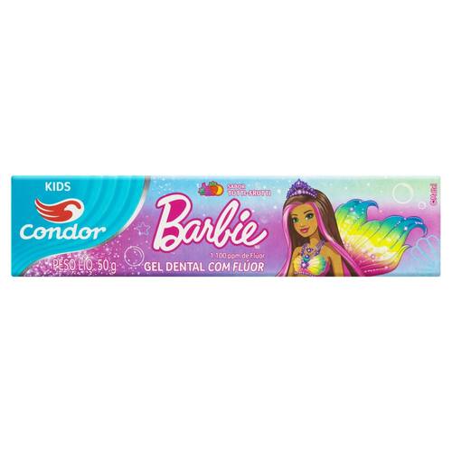 O Gel Dental Kids Barbie é recomendado para crianças de 2 a 5 anos, possui concentração intermediária de flúor (500 ppm). Garantia da proteção do flúor para os dentinhos de leite. Sabor tutti-frutti (igualzinho da goma de mascar). Disponível em bisnagas de 50g com tampa flip top.