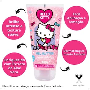 Gel Glitter Cia da Natureza Hello Kitty Corpo e Cabelo 180g