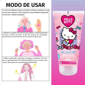 Sua textura suave e leve foi dermatologicamente testada, o que garante segurança e conforto durante o uso. Este produto é especialmente formulado para atender às necessidades de todos que buscam explorar sua criatividade, seja ao criar penteados exuberantes ou ao adicionar um toque de brilho ao corpo. Com o Gel Glitter Hello Kitty, você pode se sentir confiante e deslumbrante em qualquer ocasião.