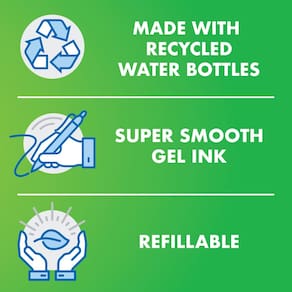 - Alternativa ecológica: quer tornar seus itens essenciais do dia a dia um pouco mais ecológicos? Experimente as canetas rolo de gel B2P, que são feitas de garrafas de água recicladas e apresentam tinta de gel G2 vibrante de longa duração da Pilot, para escrita suave e sem esforço.