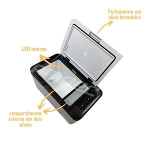 Geladeira portátil para caminhão, carro, trailer, motor home, micro-ônibus - 25 litrosQuadrivolt 12v/24v - 110v/220v Design modernoModo congelamento máximo max ou modo economia eco Design lindo e modernoPossui aplicativo conectado via bluetooth para controle de temperatura, voltagem e bateria1 compartimento maior e outro menorDimensão: 68,5 cm largura x 34m altura x 33cm profundidade Luz de led internaAjuste de temperaturaTipo de refrigeração: compressorModo de resfriamento: freezer, geladeiraMaterial: abs, alumínio, pp, pu, placa pcmCapacidade: 25 litrosResfriamento: até -20ºcTensão: 12v/24v, ac 100v 240vPoder: 45wGarantia: 1 anoCertificação: ce, roh2, lfgb, e-marcas, pahsCor: preto e brancoVoltagem: 12v/24v - 110v 220vContém:01 geladeira01 cabo para ligar no veículo01 fonte de alimentação externa01 cabo de energia tomada padrão americano - a ampec auto peças não se responsabiliza pelo mau uso ou instalação indevida do produto, sempre recomendamos que a instalação seja feita por um profissional especializado.- o produto é novo Sim, não trabalhamos com produtos usados, remoldados ou remanufaturados.-tem disponibilidade do produto Temos disponibilidade de todos nossos produtos enquanto durarem os estoques.- imagem ilustrativa utilizada para identificação e demonstração de produto.- as marcas e modelos citadas no anúncio, pertencem aos seus respectivos fabricantes, somente mencionadas como referências para o uso correto do produto, conforme artigo 31 da lei: 8078 de 11.09.1990 Não temos qualquer vínculo com estas empresas.