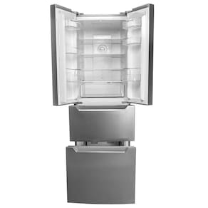 Na parte de cima, as duas portas se abrem para um espaço gigante, com prateleiras de vidro, gaveta para frutas e legumes, e mais prateleiras nas portas. Embaixo, o congelador tem duas gavetas que você puxa separadamente, assim fica fácil pegar o que precisa. E não se preocupe em esquecer a porta aberta, ela te avisa com um alarme! A luz de LED dentro da geladeira te ajuda a encontrar tudo rapidinho