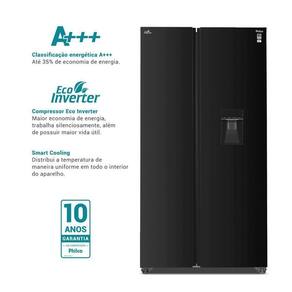 A Geladeira 434L Philco Frost Free Inverter Side by Side PRF43A transforma a sua cozinha em um espaço de requinte e modernidade. O design elegante e o acabamento na cor preta impressionam a primeira vista, enquanto o dispenser de água gelada oferece praticidade e conforto para o seu dia a dia.
