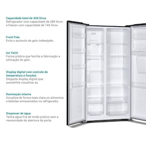 Capacidade de 434L (289L no refrigerador e 145L no freezer).