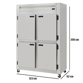 Características Principais Isolamento 100% em poliuretano Revestimento externo em Inox Escovado Revestimento interno em Galvanizado Sistema de ar forçado (Frost Free), ecológico e econômico Portas com sistema anti-transpirante e puxadores embutidos Prateleiras reguláveis pintadas em epóxi Rodízios para melhor deslocamento Controle de temperatura digital ou analógico