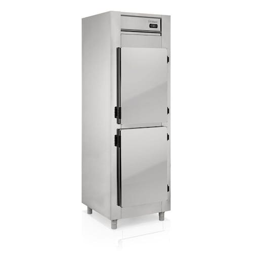 Refrigerador Comercial 2 Portas GREP2P Gelopar. Conservação e Exposição de produtos em cozinhas industriais de hotéis, restaurantes, clubes, bares, lanchonetes, confeitarias, mercados, mercearias e outros. Refrigeração: Ar forçado com evaporador aletado. Temperatura: 0 a +7C. Degelo: Automático. Controlador eletrônico com indicador de temperatura. Revestimento Interno: Aço Galvanizado. Revestimento Externo: Aço Inox 430. Resistência no quadro de portas. Prateleiras. 4 níveis, aramadas, reguláveis. Pés niveladores. Construção do Gabinete: Monobloco. Parte frontal com resistência no quadro de portas. PESO: 81 Kg. CAPACIDADE: 536L. TEMPERATURA: 0° a +7°C CONSUMO: 4,8 kWh/dia. DIMENSÕES EXTERNAS (CxAxL): 63x202,4x67,9cm. Equipamento certificado conforme Portaria Inmetro nº 371/2009. Refrigerador Comercial 2 Portas GREP2P Gelopar é na Atau.