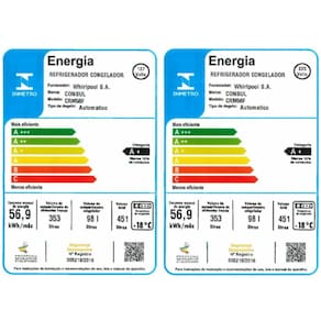 Características: Capacidade do Refrigerador de 311L Capacidade do freezer de 99L Capacidade total de 410L Frost Free 2 portas Painel de controle interno Filtro Antiodor Iluminação em LED Gavetão transparente de frutas e legumes Função turbo Espaço Frio 2 formas de gelo Potência 110 V - 190W Potência 220 V - 165W Frequência 60 Hz 3 níveis de temperatura no refrigerador 2 porta ovos Separador de garrafas 2 prateleiras com regulagem de altura Pés ajustáveis e com rodizio Plugue e tomada 10 A Registro Inmetro: 5218/2016