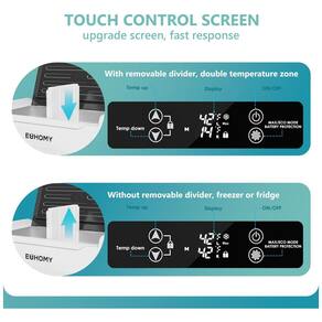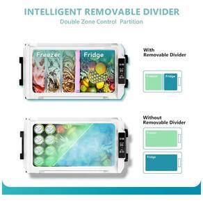 Zonas duplas e divisor removível: Quando um divisor é inserido no meio do refrigerador Euhomy 12v, o refrigerador do carro é dividido em área de congelamento e refrigeração, a zona de congelamento pode ser ajustada individualmente em temperatura 20 C 20 C, fornecendo condições ideais de zenamento para bebidas, frutas e alimentos congelados. Possui até 77 latas de Coca Cola ou 43 garrafas de 550 ml de água. Se você precisar de um resfriador elétrico maior, remova o divisor do meio e obterá um zenamento único de 57 litros como refrigerador ou freezer.