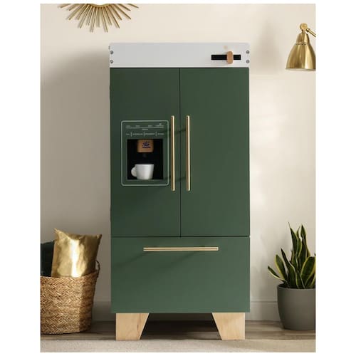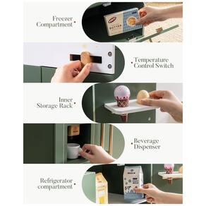 A Geladeira de Brinquedo em Verde Vintage da ROBUD é um verdadeiro destaque! Com suas portas duplas, seções superiores e inferiores perfeitas para refrigerar e congelar itens. Além dos elegantes puxadores metálicos, que proporcionam um toque retro. Mais do que um simples brinquedo, é como um item de decoração, adicionando charme ao espaço das crianças. Com espaço de sobra para guardar todos os brinquedos. Além disso, proporciona uma rica experiência interativa, permitindo que as crianças explorem a gaveta refrigerada e acessórios, com uma fatia ondulada e um simulador de espremedor de suco, estimulando a imaginação e criatividade durante o tempo de brincadeira. A linha Vintage Green da ROBUD inclui quatro produtos clássicos - forno, cozinha, máquina de lavar e geladeira - com design charmoso em verde vintage e metal requintado, perfeitos para combinar na decoração da casa. Feito de materiais de madeira certificados pela ASTM, garantindo segurança, durabilidade e estabilidade. Um presente perfeito para qualquer ocasião, medindo aproximadamente 80,5x29x81cm. Ideal para interação entre pais e filhos durante a montagem e aplicação dos adesivos.