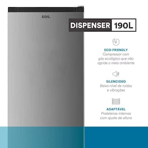 A Geladeira EOS 192 Litros Inox ERV201S oferece praticidade, eficiência e economia em um design moderno e compacto. Com capacidade total de 192 litros, sendo 50L no freezer e 142L no refrigerador, garante excelente organização interna com prateleiras reguláveis, compartimentos funcionais e iluminação LED. Sua faixa de operação de -14C a 10C, aliada ao termostato ajustável, proporciona versatilidade no uso, enquanto o funcionamento silencioso de apenas 40dB(A) assegura conforto no dia a dia. Sustentável e econômica, utiliza gás ecológico e conta com classificação energética A+++, sendo ideal para cozinhas, áreas de serviço ou ambientes comerciais.