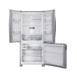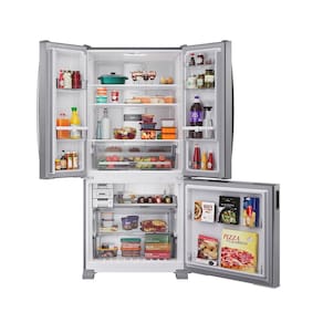 A Geladeira Brastemp Frost Free French Door BRO85MK 559 litros possui um design surpreendente por fora e por dentro e tecnologia de refrigeração para preservar seus alimentos por mais tempo. Conta com compressor Inverter A, que economiza até 25% de energia¹, tecnologia Safe Power, que mantém os alimentos congelados por até 12h² após a queda de energia e a gaveta Fresh Box que preserva frutas e legumes frescos por até 15³ dias. Abra as portas para um novo mundo de possibilidades e sofisticação. ¹Quando comparado ao modelo BRO85 com etiqueta A+++ INMETRO 2024, avaliado na norma vigente a partir de 2026. ²Teste realizado conforme procedimento interno, que simula carne congelada (conforme pacote da IEC 62552-1:2015 Anexo C) do momento da queda de energia até -6°C, com temperatura ambiente de 25ºC, sem aberturas de portas no período sem energia. ³Resultados obtidos a partir de testes baseados em normas internas Whirlpool, com tomate, maçã, kiwi, pera, pimentão e chuchu.