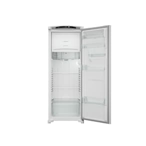 O modelo conta com prateleiras bem distribuídas e ajustáveis, que permitem organizar diferentes tipos de alimentos com facilidade, além de gaveta transparente para frutas e verduras, ajudando a conservar melhor os itens frescos. O freezer espaçoso garante excelente armazenamento de congelados, enquanto o controle de temperatura possibilita ajustar o resfriamento conforme a necessidade. O acabamento na cor branca traz um visual clean e versátil, combinando com diversos estilos de cozinha.