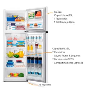 Com 347 litros de capacidade total, oferece amplo espaço interno e prateleiras ajustáveis que se adaptam às suas necessidades.