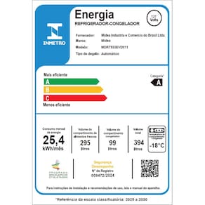 Seu design branco elegante combina com qualquer cozinha, enquanto o painel digital e o compressor com tecnologia inverter garantem controle preciso de temperatura e economia de energia. Classificado com eficiência energética A, consome apenas 25,4 kWh/mês.