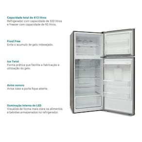 Capacidade total: 413L (320L no refrigerador e 93L no freezer)