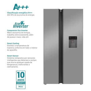 Geladeira Philco Inverter Side by Side PRF504ID, 486 Litros, Inox - 220V