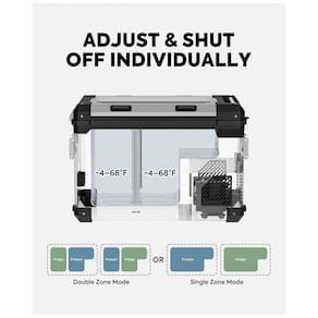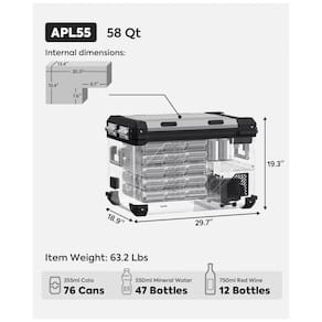 Tecnologia avançada: O refrigerador portátil APL55 pode ter temperatura controlada por meio de aplicativo móvel. O alarme do refrigerador toca quando a tampa é deixada aberta ou ocorre um código de erro. Plugues convenientes: Geladeira APL55 12V As portas 12, 24V DC são instaladas em ambos os lados da geladeira. 4 tomadas USB projetadas para carregar dispositivos móveis disponível apenas em DC Power. O transformador AC integrado permite pré resfriar o refrigerador na tomada doméstica de 110 240V. Design flexível de zona dupla: O APL55 adiciona um design de divisória removível que permite a alternância automática entre o modo de zona única e dupla removendo a partição, fornecendo 2 zonas separadas para refrigeração e congelamento com 2 controladores digitais independentes. Compressor SECOP: APL55 12v freezer Faixa de resfriamento de 4 F a 68 F 20 20 para atender a todas as suas necessidades de congelamento ou refrigeração. Modo MAX para resfriamento rápido e modo ECO para economia de energia. O compressor SECOP é estável e a tecnologia de ponta torna possível trabalhar de forma estável mesmo sob inclinação de 40.