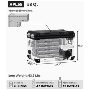 Tecnologia avançada: O refrigerador portátil APL55 pode ter temperatura controlada por meio de aplicativo móvel. O alarme do refrigerador toca quando a tampa é deixada aberta ou ocorre um código de erro. Plugues convenientes: Geladeira APL55 12V As portas 12, 24V DC são instaladas em ambos os lados da geladeira. 4 tomadas USB projetadas para carregar dispositivos móveis disponível apenas em DC Power. O transformador AC integrado permite pré resfriar o refrigerador na tomada doméstica de 110 240V. Design flexível de zona dupla: O APL55 adiciona um design de divisória removível que permite a alternância automática entre o modo de zona única e dupla removendo a partição, fornecendo 2 zonas separadas para refrigeração e congelamento com 2 controladores digitais independentes. Compressor SECOP: APL55 12v freezer Faixa de resfriamento de 4 F a 68 F 20 20 para atender a todas as suas necessidades de congelamento ou refrigeração. Modo MAX para resfriamento rápido e modo ECO para economia de energia. O compressor SECOP é estável e a tecnologia de ponta torna possível trabalhar de forma estável mesmo sob inclinação de 40.