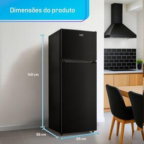 A Geladeira Refrigerador HQ-230RDF o equilíbrio que casais e famílias pequenas procuram: 230 L totais 172 L no refrigerador e 58 L no freezer em um corpo de 55 55 140 cm que se encaixa na maioria dos projetos sem ajustes.