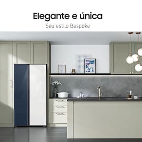 Adicione um toque de elegância que atualiza sua cozinha. O design plano minimalista, com painéis personalizáveis, combina harmoniosamente com os móveis em qualquer interior de cozinha moderna.Com um leve toque, a porta se abre automaticamente, emitindo um som e liberando a vedação para que você possa abri-lá por completo, com maior facilidade.A jarra com enchimento automático, pode ser colocada na lava-louças e você pode adicionar frutas ou ervas no infusor para criar deliciosas bebidas saborizadas. Água filtrada fresca ou aromatizada direto à mesa.Esteja preparado para qualquer ocasião com o Dual Auto Ice Maker. Um suprimento constante com dois tamanhos diferentes de gelo, o gelo em cubos e Ice Bites™, que resfriam as bebidas rapidamente. Ele produz 2,0 kg de gelo por dia e armazena até 4,1 kg total, para que você sempre tenha gelo.Guarde todos os seus alimentos de forma organizada dentro dos 590L da geladeira. A exclusiva tecnologia SpaceMax™ permite que as paredes sejam mais finas, oferecendo mais espaço sem aumentar as dimensões externas ou comprometer a eficiência energética.Tenha o controle total dos gastos e monitore o consumo de energia da sua geladeira em tempo real com a função SmartThings Energy e o modo AI Energy.Monitore e gerencie o desempenho da geladeira em qualquer lugar usando Wi-Fi integrado e o aplicativo SmartThings. Você pode controlar os modos de resfriamento, alterar a temperatura e verificar se o Dual Auto Ice Maker está ativo. Ele também alerta se a porta está aberta ou se o filtro precisa ser substituído, como também diagnostica outros problemas.A prateleira deslizante tem metade do tamanho das prateleiras fixas e pode deslizar para trás para criar mais espaço entre as outras prateleiras para armazenar garrafas altas, recipientes e itens grandes.Com o toque de um botão, o Power Cool injeta ar frio na geladeira para resfriar rapidamente alimentos e bebidas. Já o Power Freeze injeta uma rajada de ar frio no freezer, ideal para congelar alimentos e fazer gelo mais rápido.Saídas de ar estrategicamente posicionadas para manter a temperatura estável em todos os cantos da geladeira sem oscilações. Assim, a temperatura se mantém uniforme e constante, colaborando para a conservação dos alimentos.Filtro com sistema "girou, trocou", mais facilidade de instalação e praticidade na hora de trocar o refil, com um aviso que informa o momento da substiuição, mostrado no painel interno da geladeira. Além disso, os filtros originais Samsung utilizam tecnologia de filtragem por carvão, removendo até 99,7% de microplásticos contaminantes potencialmente presentes na água.A tecnologia Digital Inverter garante mais economia, maior nível de silêncio e maior durabilidade com os 20 anos de garantia no compressor.As lâmpadas de LED são econômicas e delicadas, dão beleza e iluminam cada canto da geladeira, garantindo maior visibilidade a todos os seus alimentos.